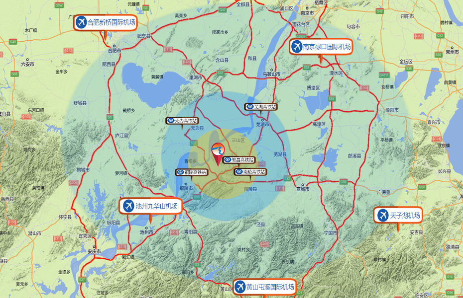 高鐵路線:乘坐高鐵至繁昌西站(5公里)/銅陵北站(10公里)下