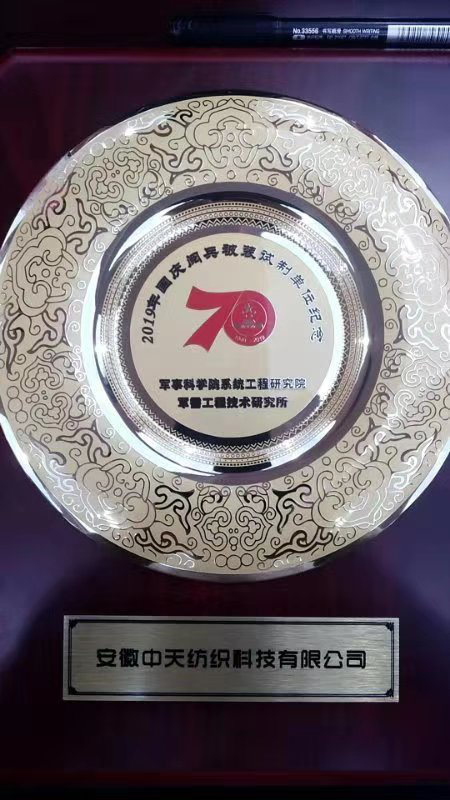 對安徽中天紡織科技股份有限公司新型迷彩材料的高標(biāo)準(zhǔn)高質(zhì)量保障給予高度評價。會議授予各企業(yè)紀(jì)念牌,以示表彰。