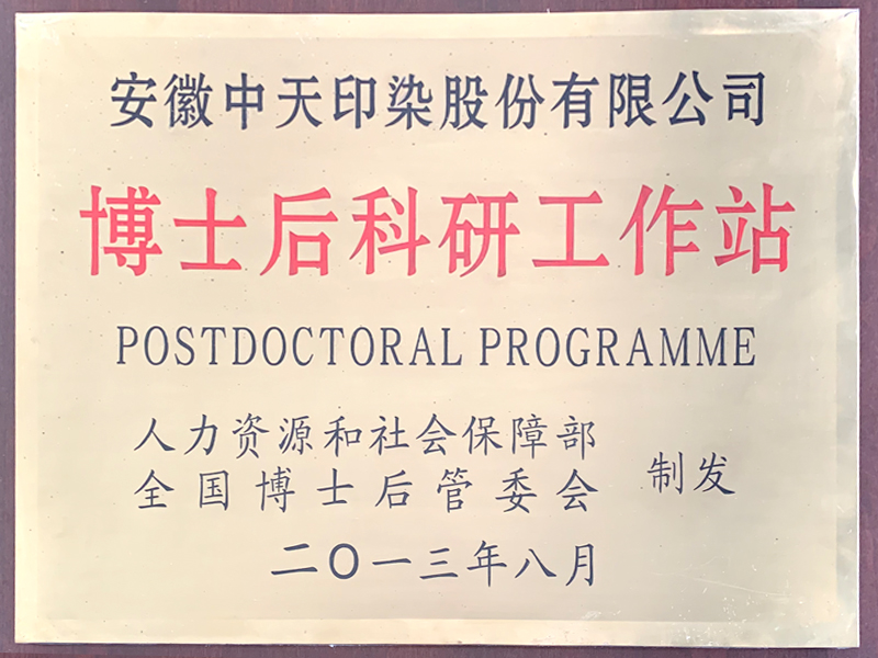 安徽中天紡織博士后科研工作站于2013年8月在人力資源和社會(huì)保障部的批準(zhǔn)下正式成立。工作站始終是以“培養(yǎng)和使用相結(jié)合,在使用中培養(yǎng),培養(yǎng)和使用中發(fā)現(xiàn)更高級(jí)的人才”的指示精神為發(fā)展基礎(chǔ),按照國(guó)家和省、市各級(jí)行政的科技和經(jīng)濟(jì)發(fā)展要求,根據(jù)中天紡織公司的產(chǎn)品研發(fā)戰(zhàn)略和經(jīng)濟(jì)發(fā)展戰(zhàn)略,通過(guò)產(chǎn)學(xué)研聯(lián)合等各種科技平臺(tái),進(jìn)行具備高尖技術(shù)含量和深遠(yuǎn)社會(huì)影響的新型面料產(chǎn)品的研發(fā),并努力實(shí)現(xiàn)其產(chǎn)業(yè)化。